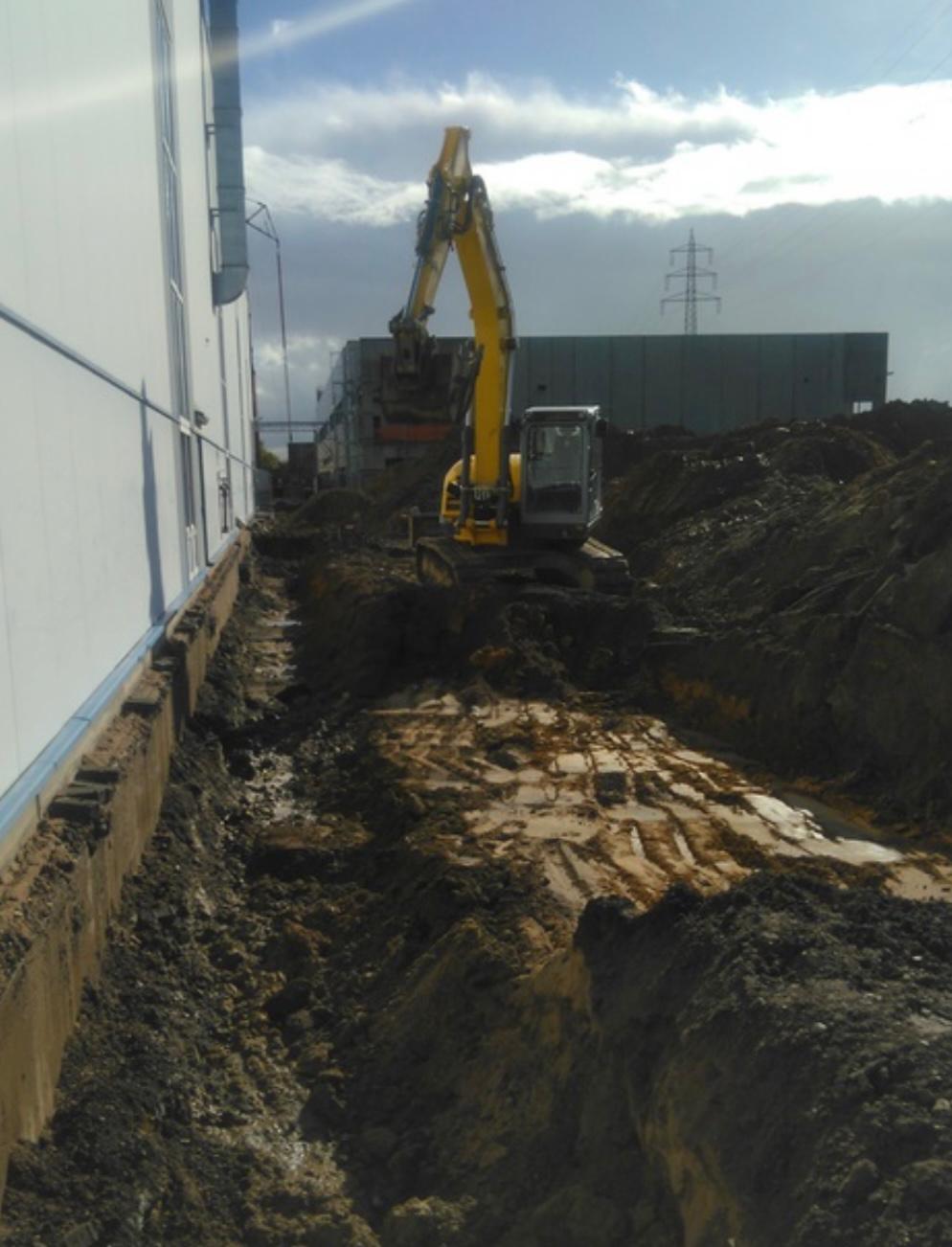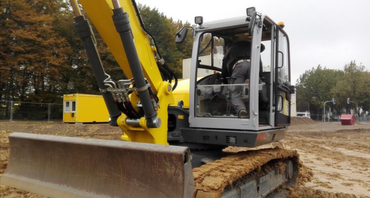 Eine Grabenräumschaufel kann zusätzlich als Zubehör gemietet werden, ein Tieflöffel ist im Mietpreis enthalten.